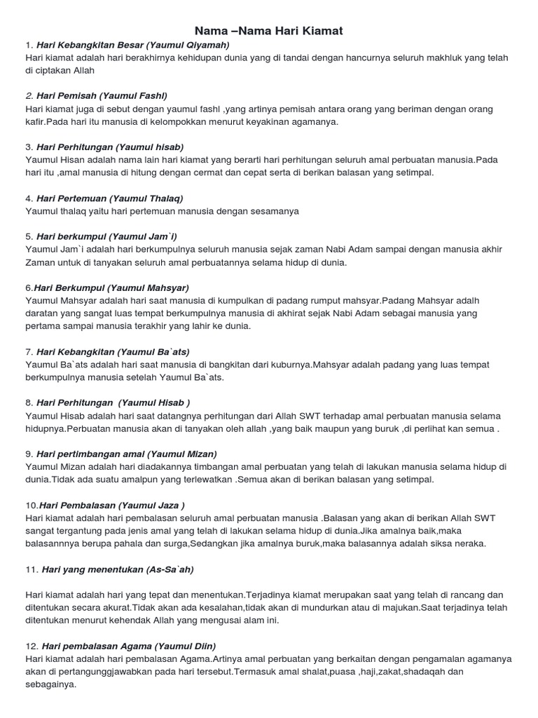 Cari Berbagai Sumber Dan Tulis Nama Nama Lain Dari Hari Kiamat