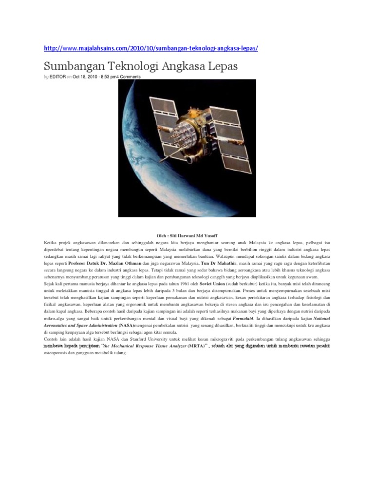Sumbangan Teknologi Angkasa Lepas Majalahsains