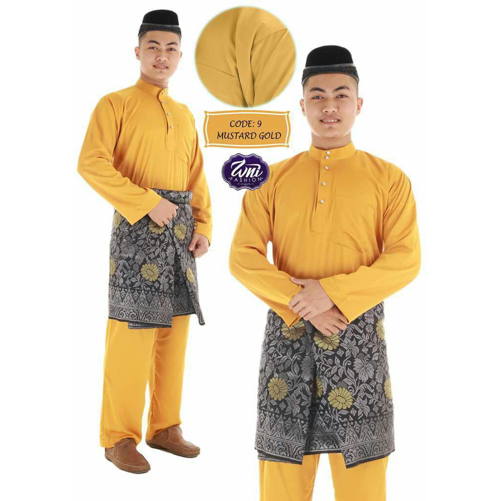 Baju Melayu Moden Slim Fit Yellow Mustard Gold Kuning Emas Dewasa
