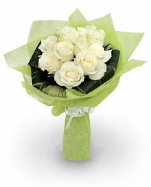 Buket Bunga Mawar Hijau Putih Plastik Artificial Green White Rose