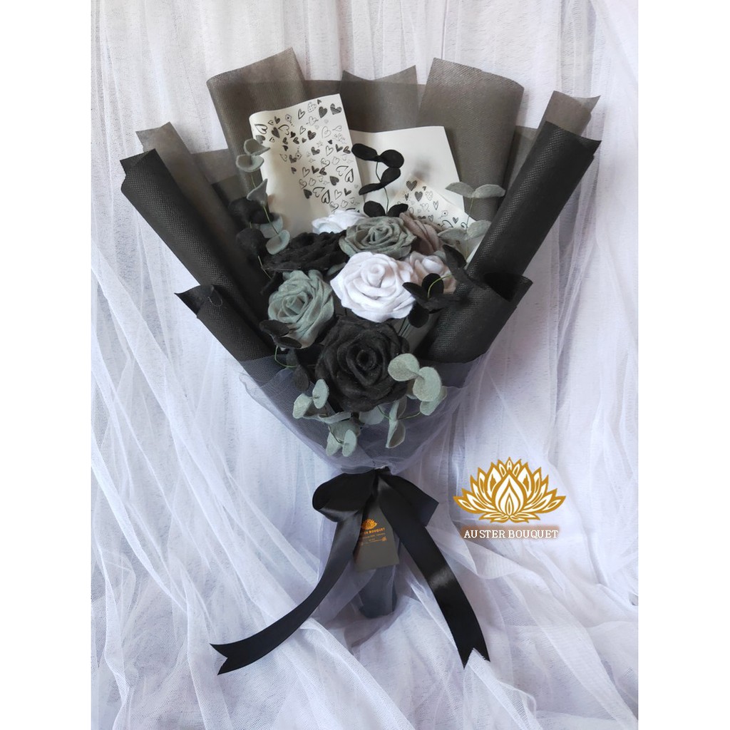 Jual Black Roses Bouquet White Wrapping Buket Bunga Mawar Hitam