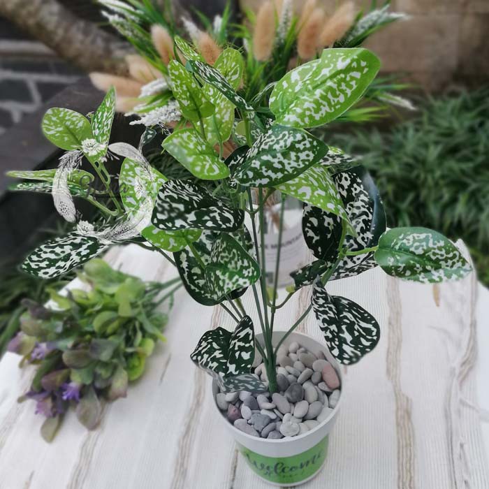 Jual Bunga Tanaman Hias Daun Hijau Putih Artificial Vas Plastik