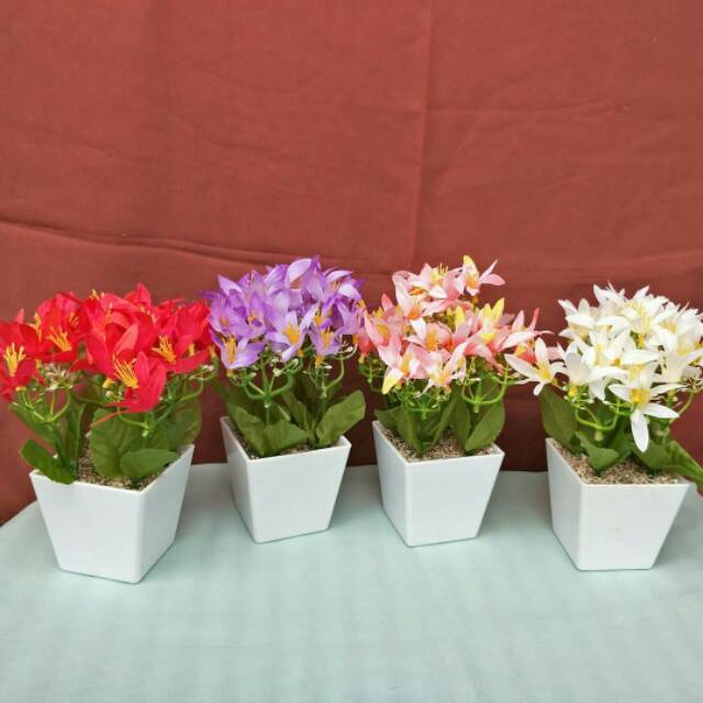 Set Bunga Plastik Kenanga Warna Dengan Pot Melamin Putih Hexagonal