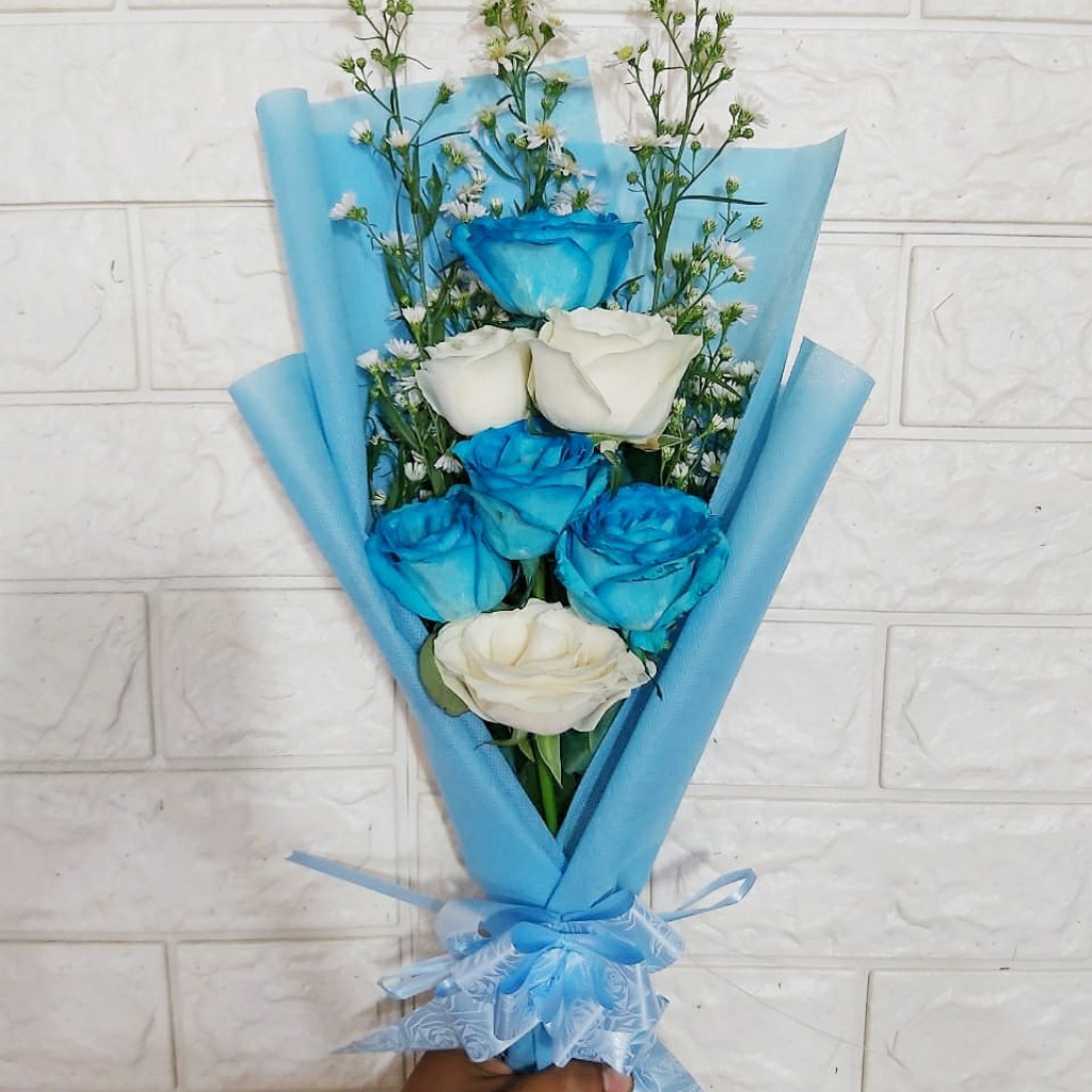 Bunga Buket Mawar Biru Dan Putih Floristshop
