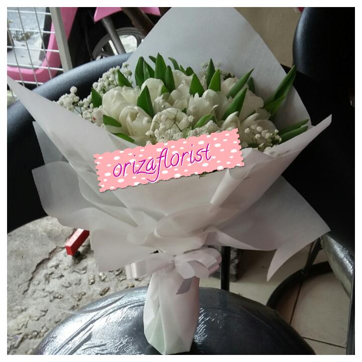 Handbouquet Tulip Putih Oriza Florist
