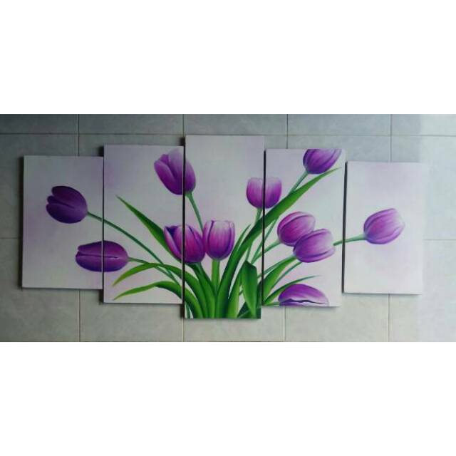 Lukisan Panel Bunga Tulip Ungu Putih 5in1 Shopee Indonesia