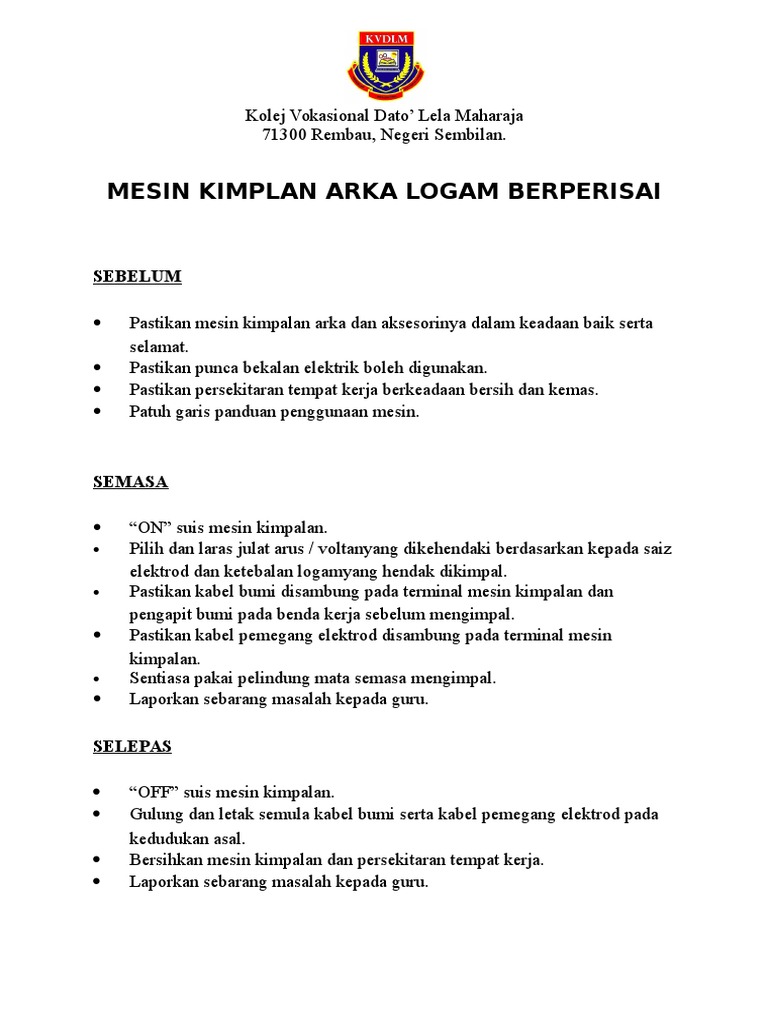 Mesin Kimpalan Arka Logam Berperisai Download Doc
