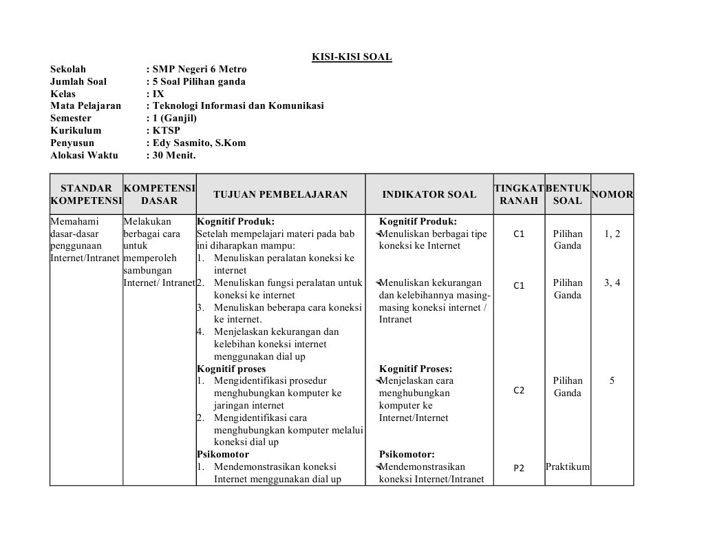 Kisi kisi ini disusun berdasarkan kriteria pencapaian standar kompetensi lulusan standar isi dan kurikulum yang berlaku. Selamat pagi siang sore malam. Untuk merumuskan indikator dengan tepat guru harus memperhatikan materi yang akan diujikan indikator pembelajaran kompetensi dasar dan standar kompetensi. Indikator dalam kisi kisi merupakan pedoman dalam merumuskan soal yang dikehendaki.