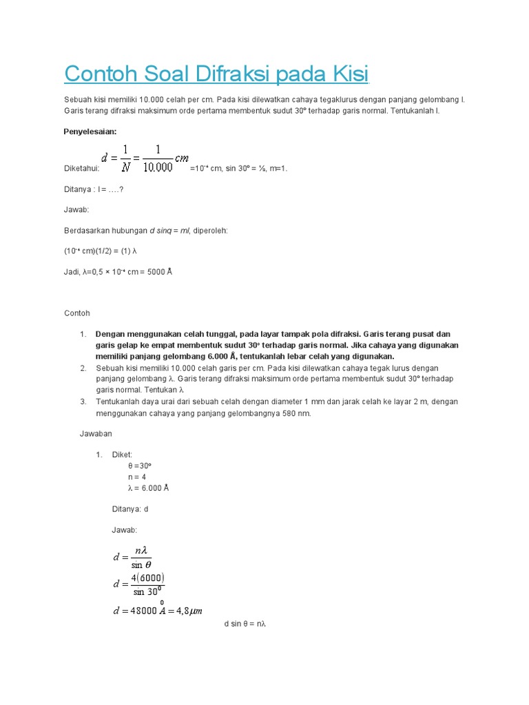 Contoh Soal Difraksi Dan Penyelesaiannya Soalfismat Com