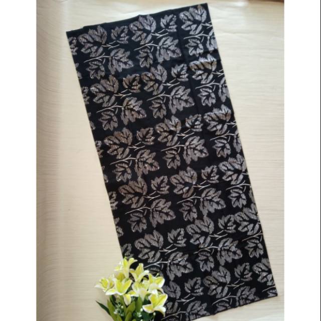 Kain Batik Cap Corak Daun Warna Hitam Shopee Indonesia