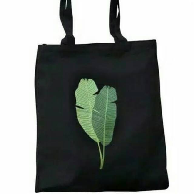 Totebag Hitam Corak Daun Shopee Indonesia