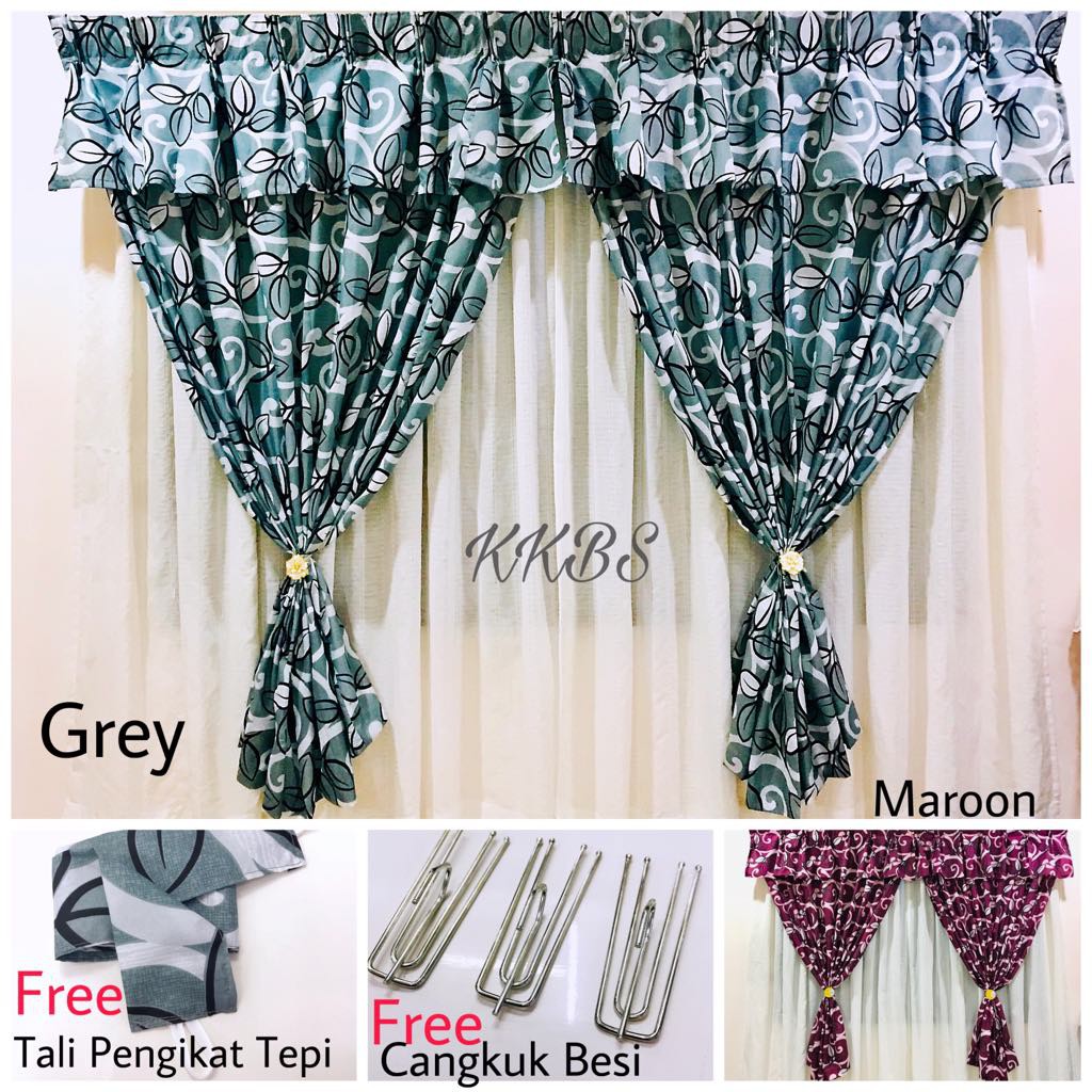1 Set Langsir Siap Jahit Free Cangkuk Design Daun 1 Set Leaves