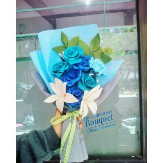 Jual Buket Bunga Mawar Biru Fresh Hand Bouquet Bucket Wisuda