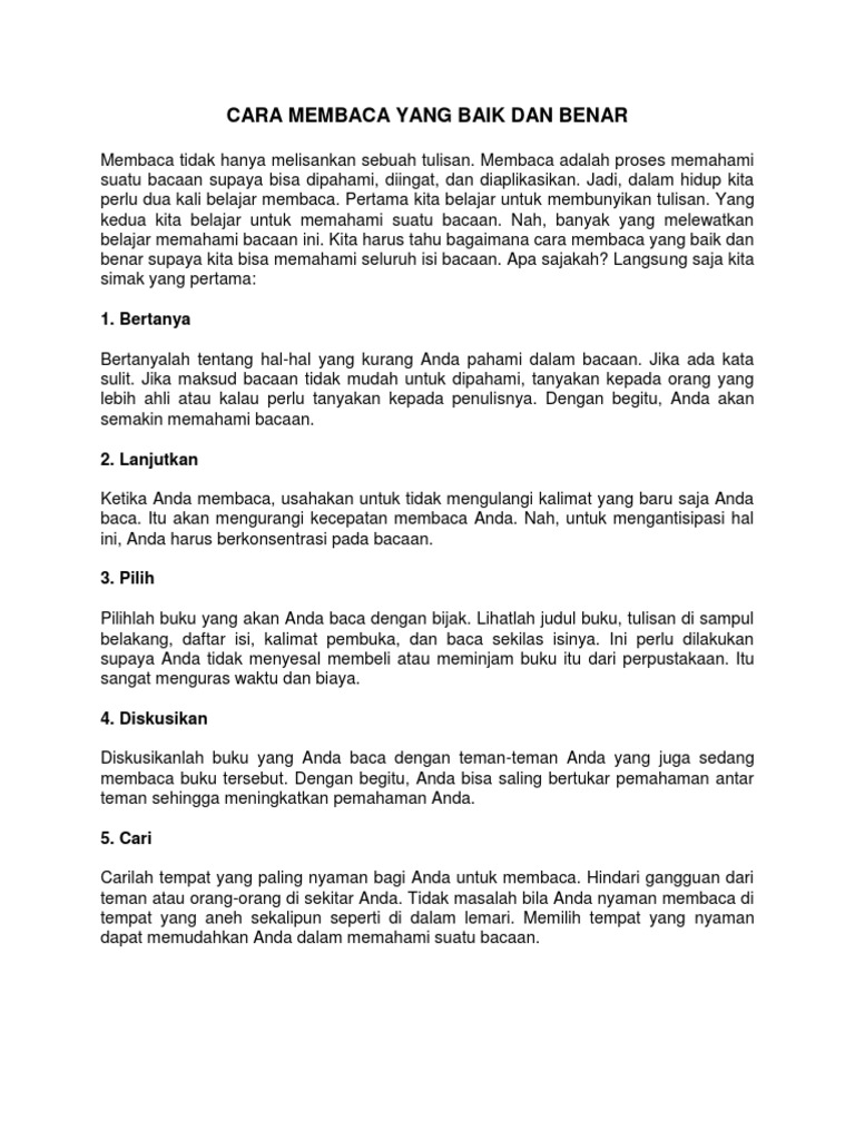 Cara Membaca Yang Baik Dan Benar