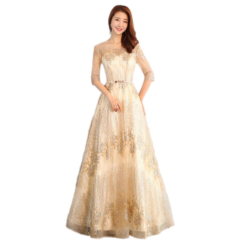 Female Host Dress Latest High Grade Beautiful Long Dress Gold