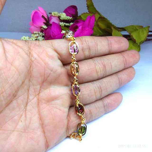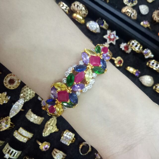 Gelang Tangan Permata Warna Warni Emas Bangkok 999 9 High Quality