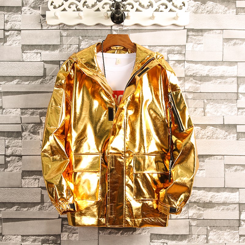 Jaket Hoodie Lengan Panjang Warna Emas Silver Untuk Pria