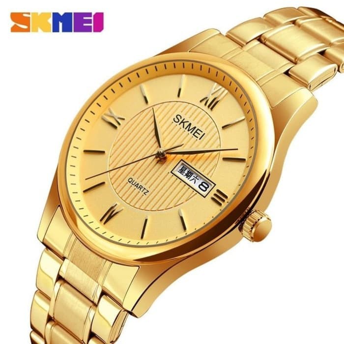Jam Tangan Pria Merk Skmei Warna Emas Anti Air 30m Murah