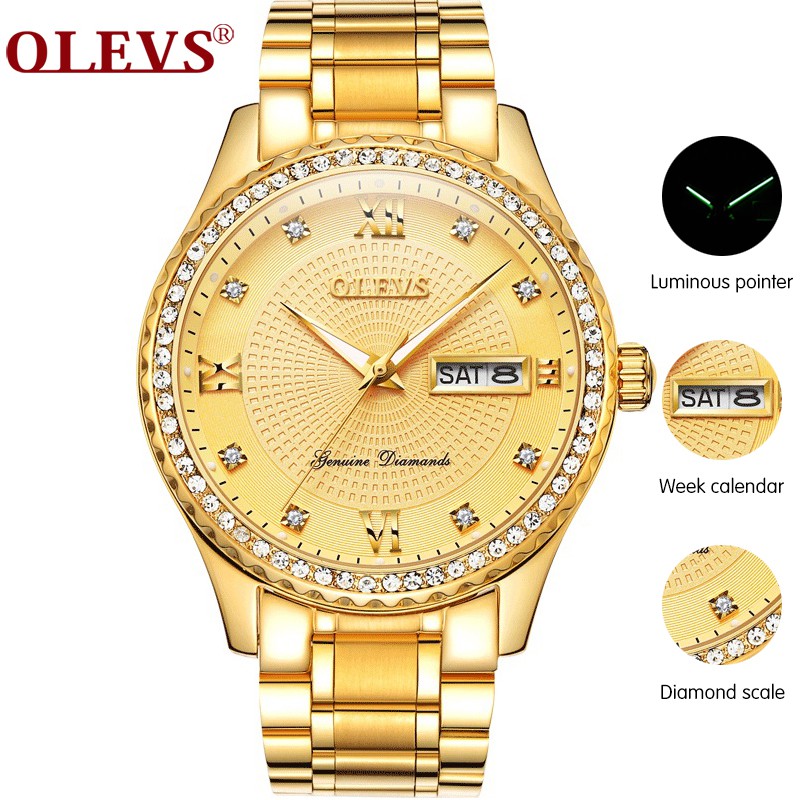 Olevs Jam Tangan Pria Original Jam Emas Luxury Steel Quartz Gold