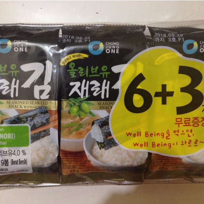 Chung Jung One Won Seaweed 6 3 Nori Olive Oil Rumput Laut Kering