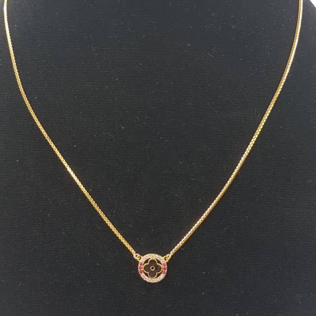 Kalung Emas Asli Kadar 875 Model Bunga Hitam Permata Bulat Merah