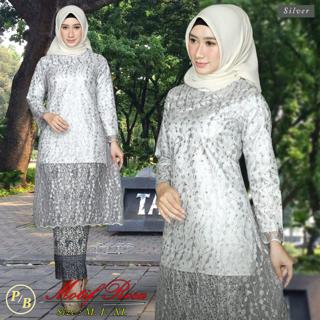 Jual Setelan Kebaya New Naura Brokat Organza Warna Silver