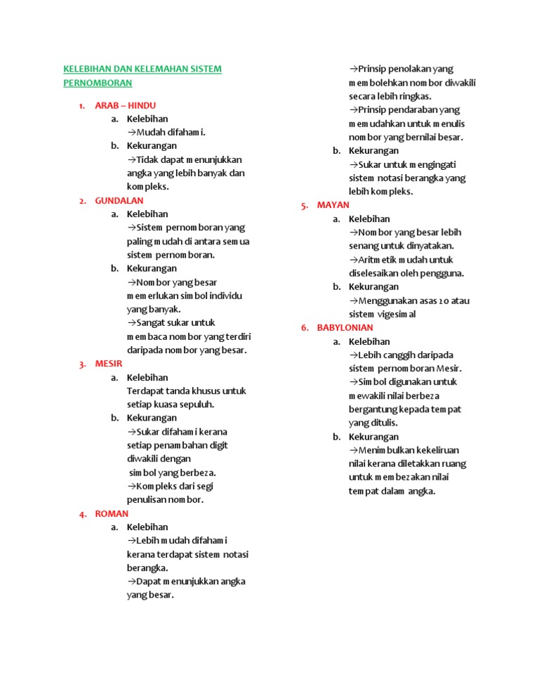 Doc 55471706 Kelebihan Dan Kekurangan Sistem Nombor Lynn Qiin Academia Edu