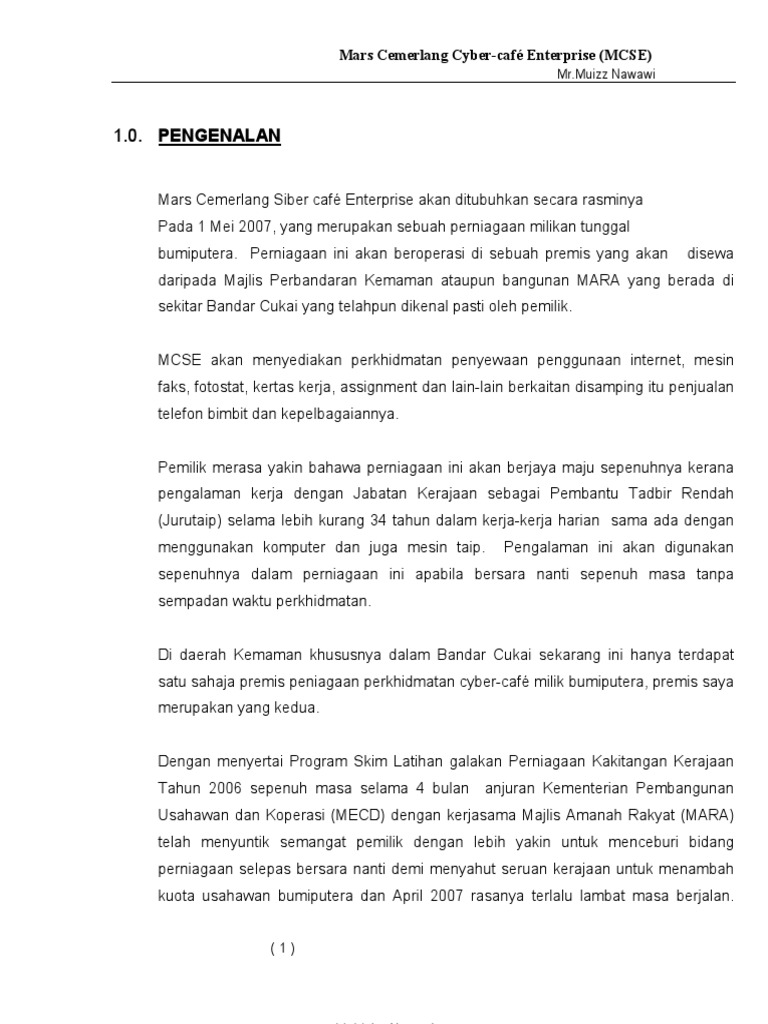 Contoh Kertas Kerja Perniagaan Cyber Cafe Pdf Document