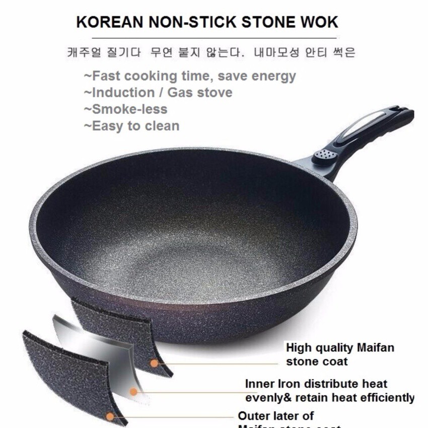 Korea High Quality Non Stick Cooking Wok Pan 30cm Shopee Malaysia