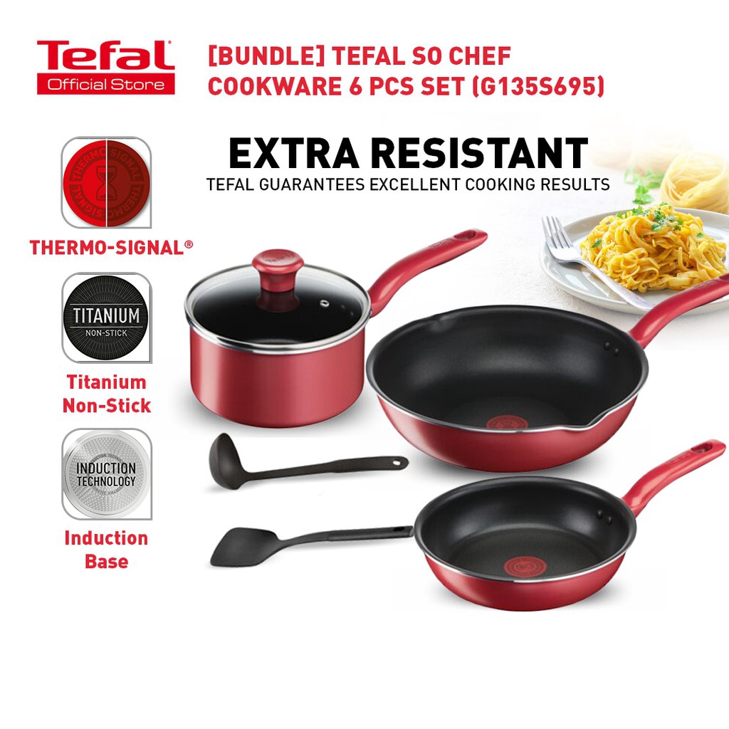 Tefal So Chef 6 Pcs Cookware Set Frypan Deep Frypan Saucepan Spatula Turner Shopee Malaysia