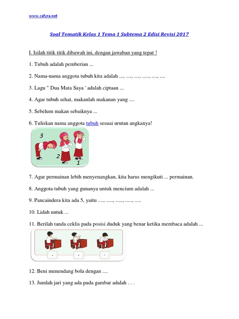 Soal Tematik Kelas 1 Tema 1 Subtema 2 Edisi Revisi 2017 Pdf