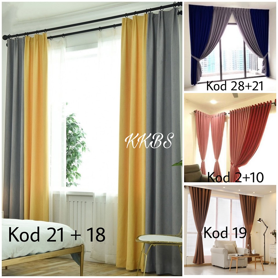 1 Set 2 Keping 80 Blackout Langsir Tebal 37 Pilihan Warna Jenis