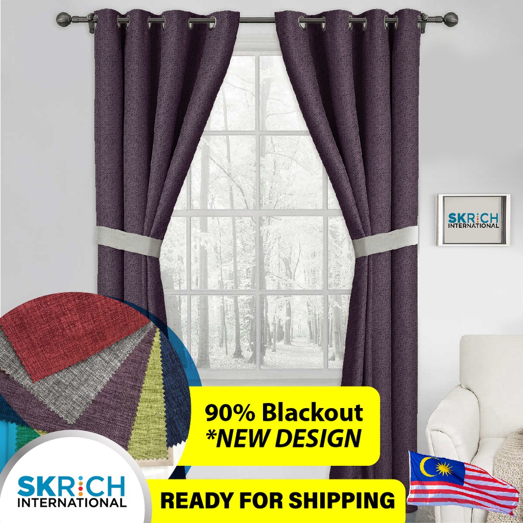 Langsir Luxury 90 Blackout Sunlight Ring Hook Curtain Shopee