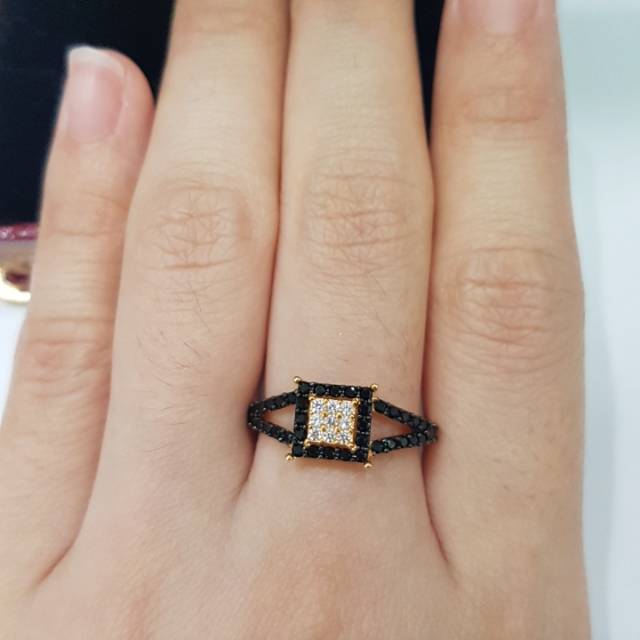 Cincin Emas Asli Kadar 750 Model G Permata Hitam Hias Cat Warna