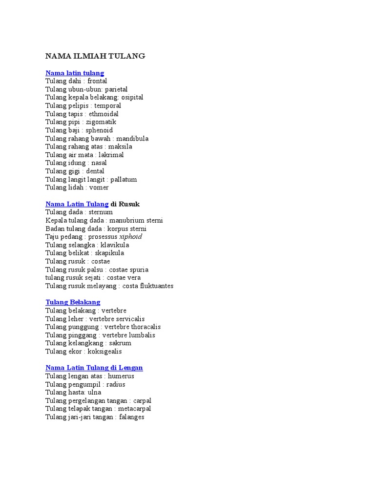 Nama Ilmiah Tulang Nama Ilmiah Tulang