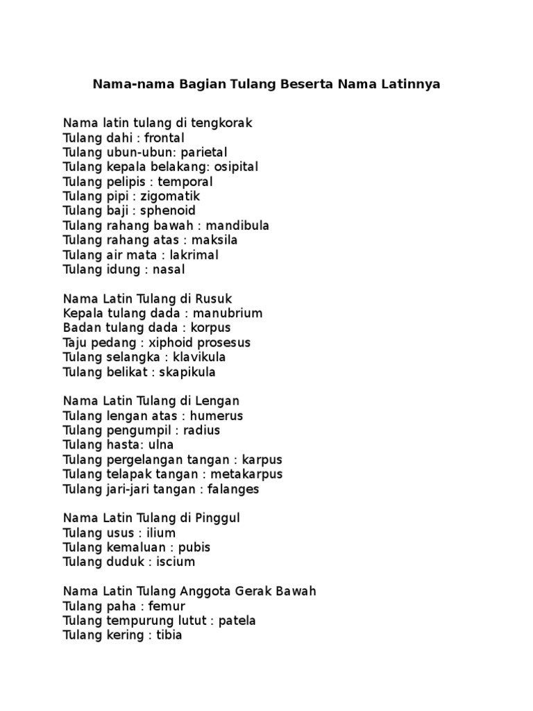 Nama Latin Tulang Pada Manusia Pdf Document