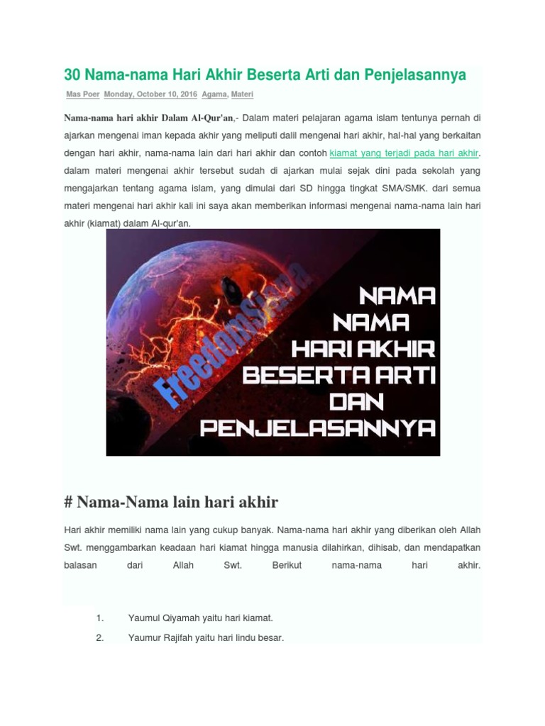 30 Nama Nama Hari Akhir Beserta Arti Dan Penjelasannya Freedomsiana