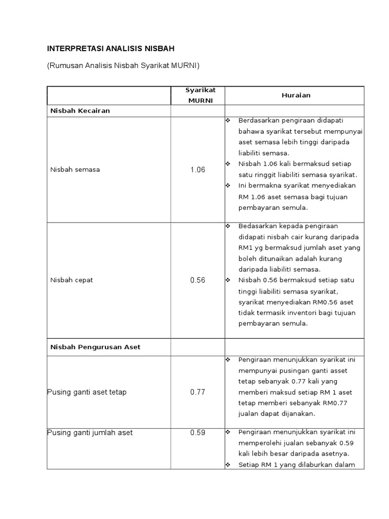 Interpretasi Analisis Nisbah