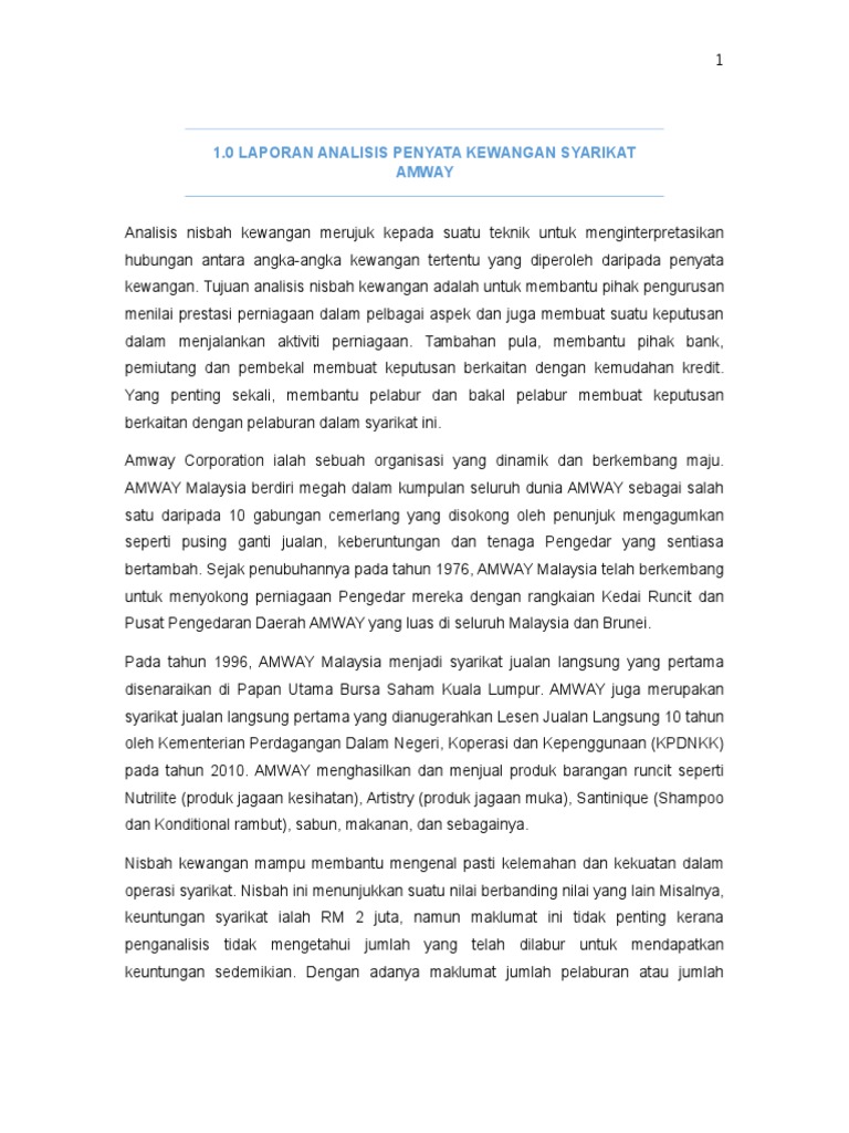 Laporan Analisis Penyata Kewangan Syarikat Amway