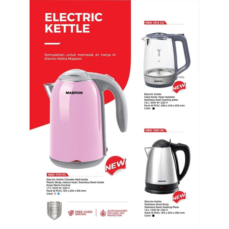 Electric Kettle Mek 1701pl Mp Teko Listrik Pemanas Air Listrik Maspion Shopee Indonesia