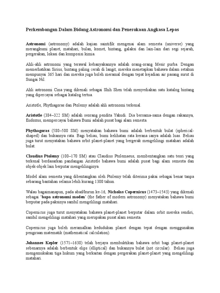 Perkembangan Dalam Bidang Astronomi Dan Penerokaan Angkasa
