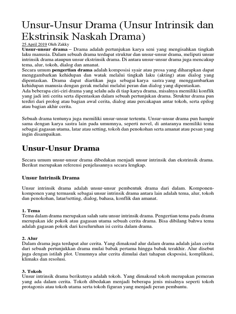 Unsur Unsur Drama Unsur Intrinsik Dan Ekstrinsik Naskah Drama