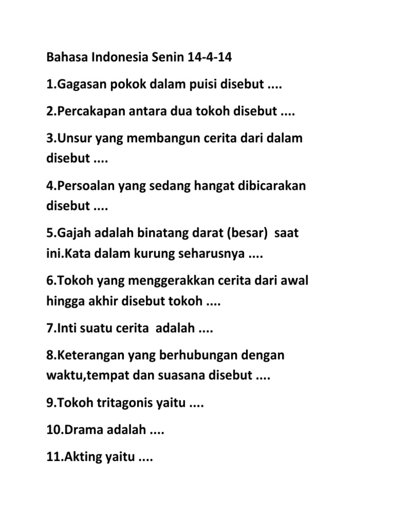 Soal Uts Bahasa Indonesia Kelas 5 Semester 2