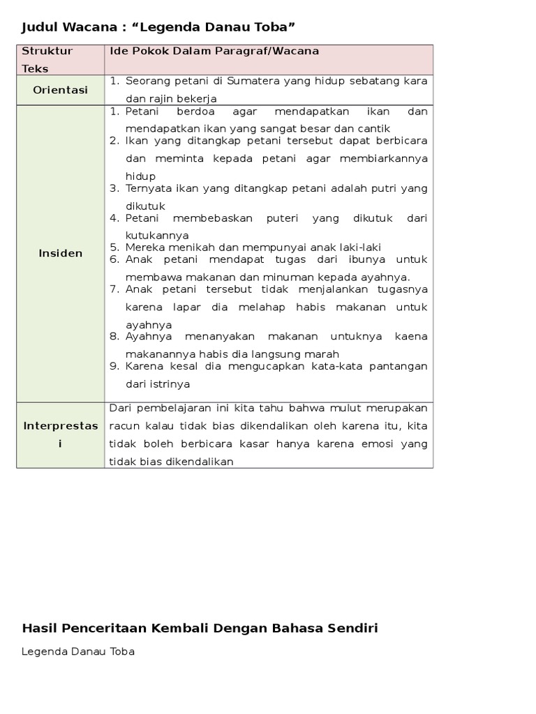 Pokok Cerita Danau Toba