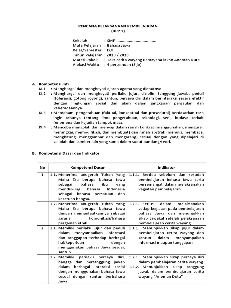 Rencana Pelaksanaan Pembelajaran Rpp