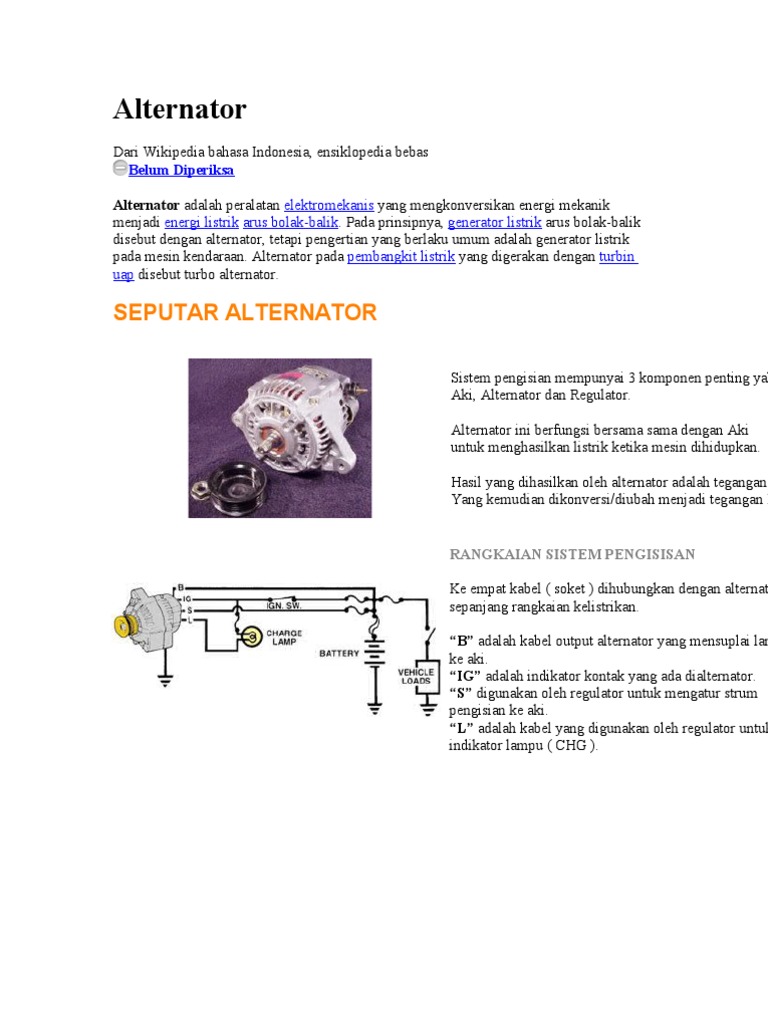 Rangkaian Alternator Mobil Dan Cara Kerjanya