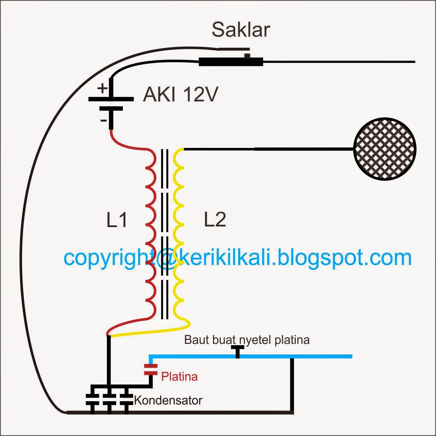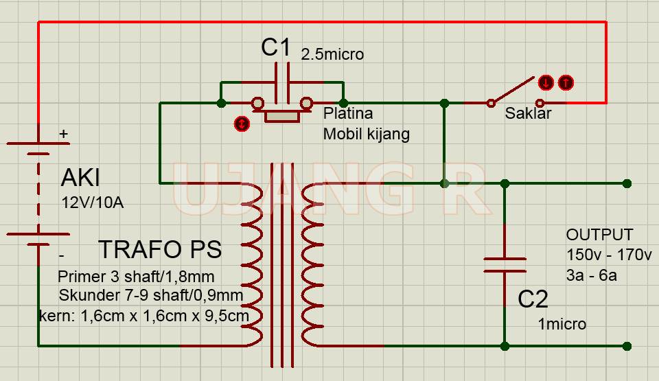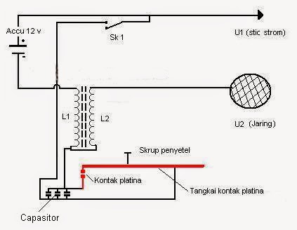 Skema Rangkaian Setruman Ikan Menggunakan Platina Tanpa Condensor