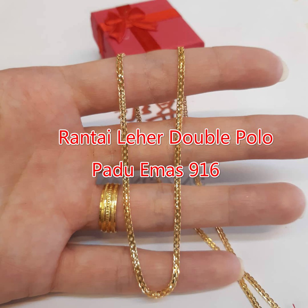 Wing Sing Rantai Leher Double Polo Padu Emas 916 916 Gold Double