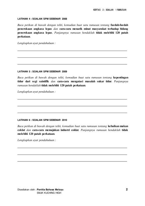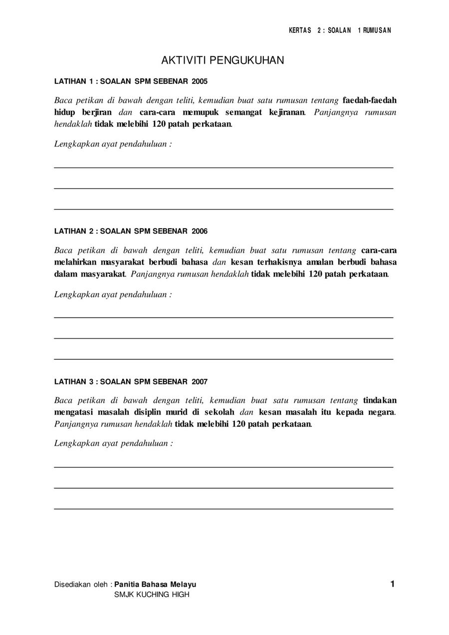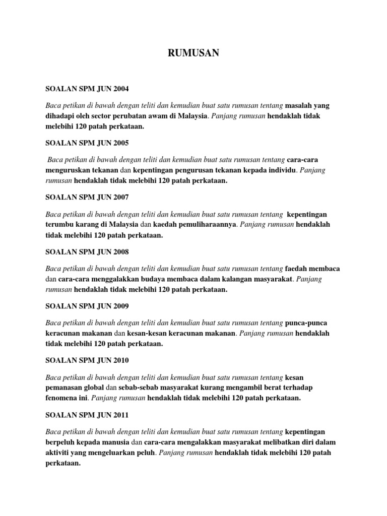 Bahasa Melayu Kertas 2 Peperiksaan Spm 2008 Soalan 1 Rumusan