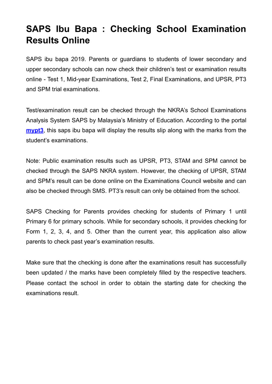 Saps Ibu Bapa Semakan Keputusan Peperiksaan Gurubesar My